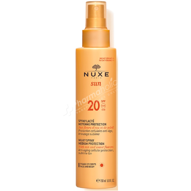 Nuxe Sun Milky Spray for Face and Body Medium Protection SPF 20 150ml is a glamorous solar care which protects the skin against UVA and UVB.