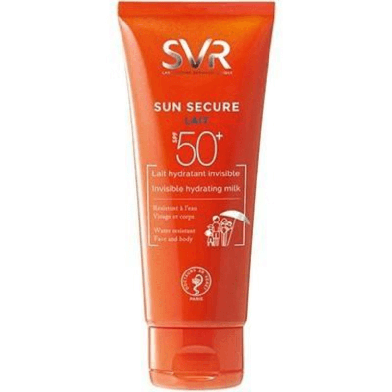 SVR Sun Secure Invisible Hydrating Milk SPF50 with velvety texture and invisible finish is a milk that is perfectly suited to the skin that is hypersensitive to the sun, for the whole family: baby, child, adult. It is a sunscreen with a nourishing formula and broad-spectrum protection.