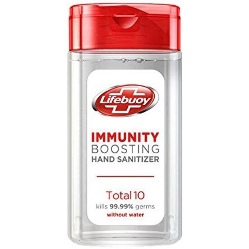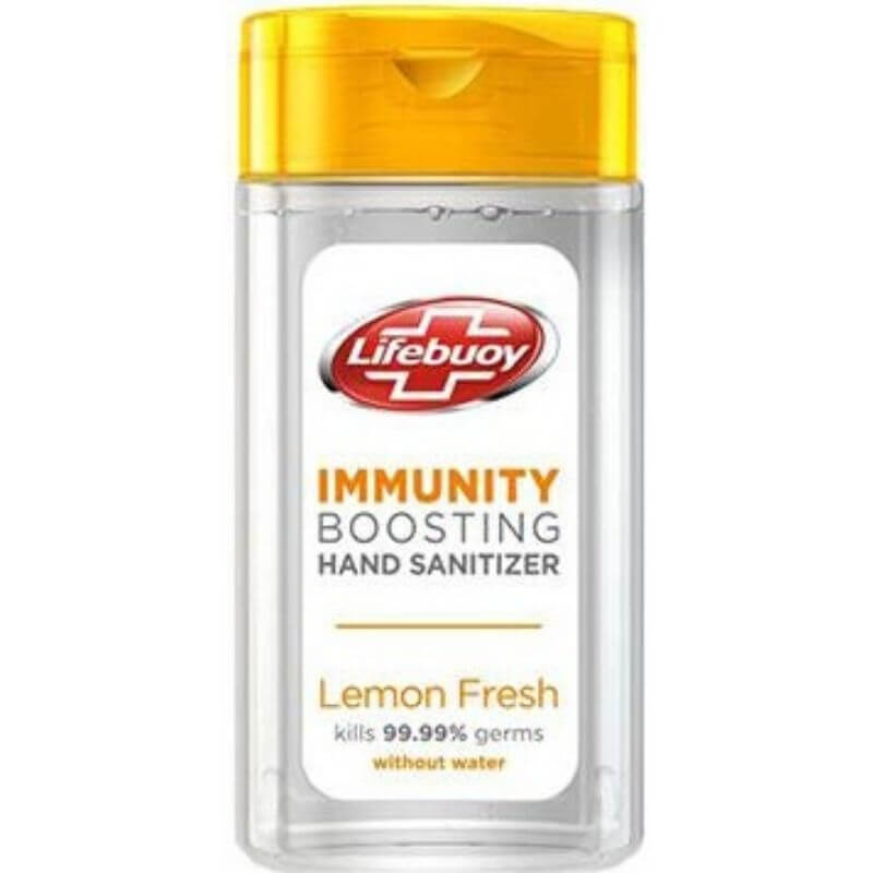 Lifebuoy Hand Sanitizer kills 99.99% germs without water. It is enriched with moisturizers and vitamin e that leaves your hands feeling soft, fresh and smooth. It is in gel form and convenient to carry.